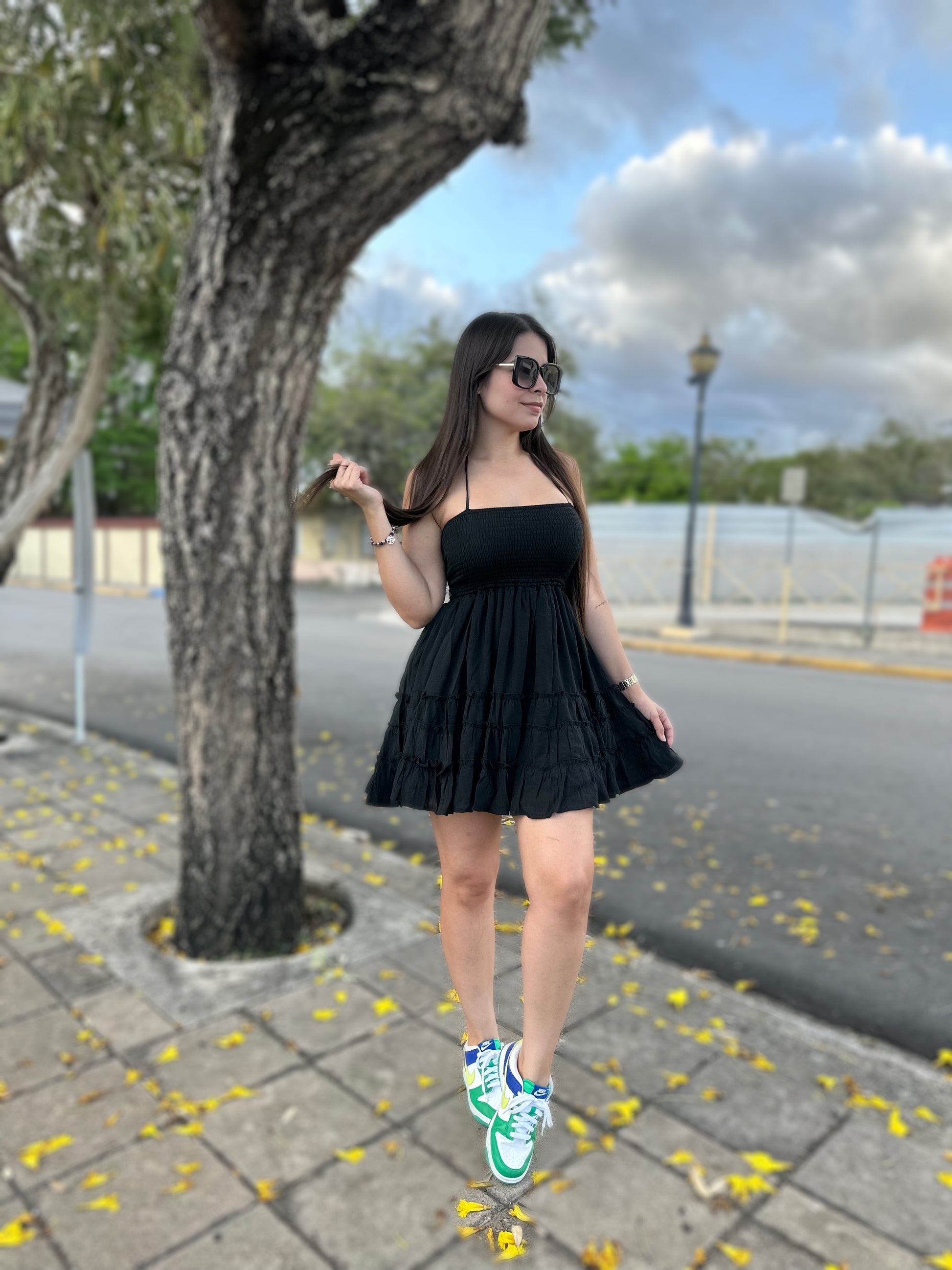 This halter mini dress features dainty shoulder straps that tie into a halter neckline, a smocked bodice that hugs your shape, and a flowy, tiered skirt for the perfect twirl moment. Turn around to reveal stunning strappy back detailing that adds the perfect surprise touch. |