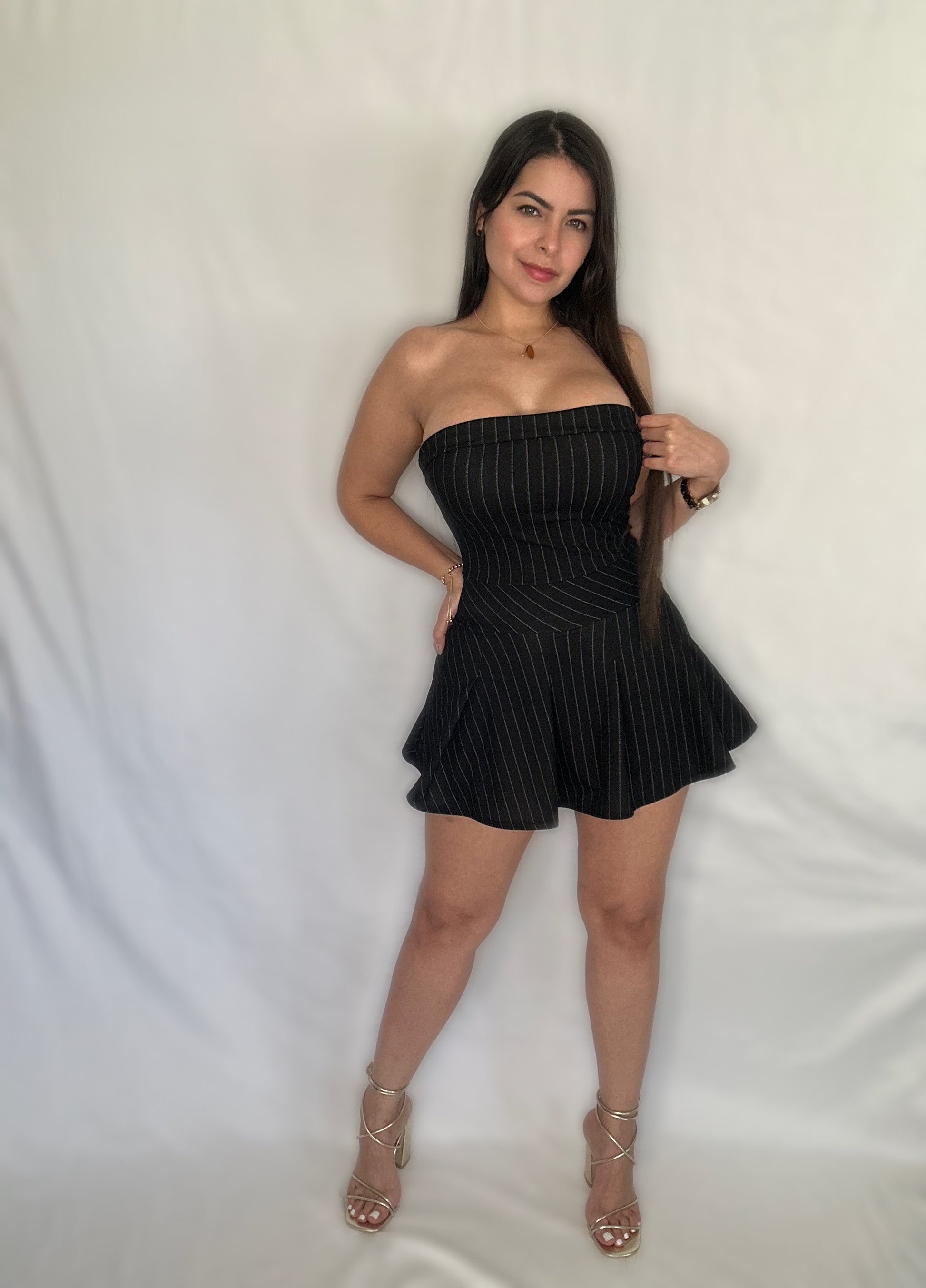 | Description | This chic black dress with subtle pinstripes combines sophistication and playfulness. Featuring a strapless neckline and flattering fit-and-flare silhouette, it’s perfect for a night out or a stylish daytime look. Built-in shorts ensure comfort and coverage so you can move with confidence. |